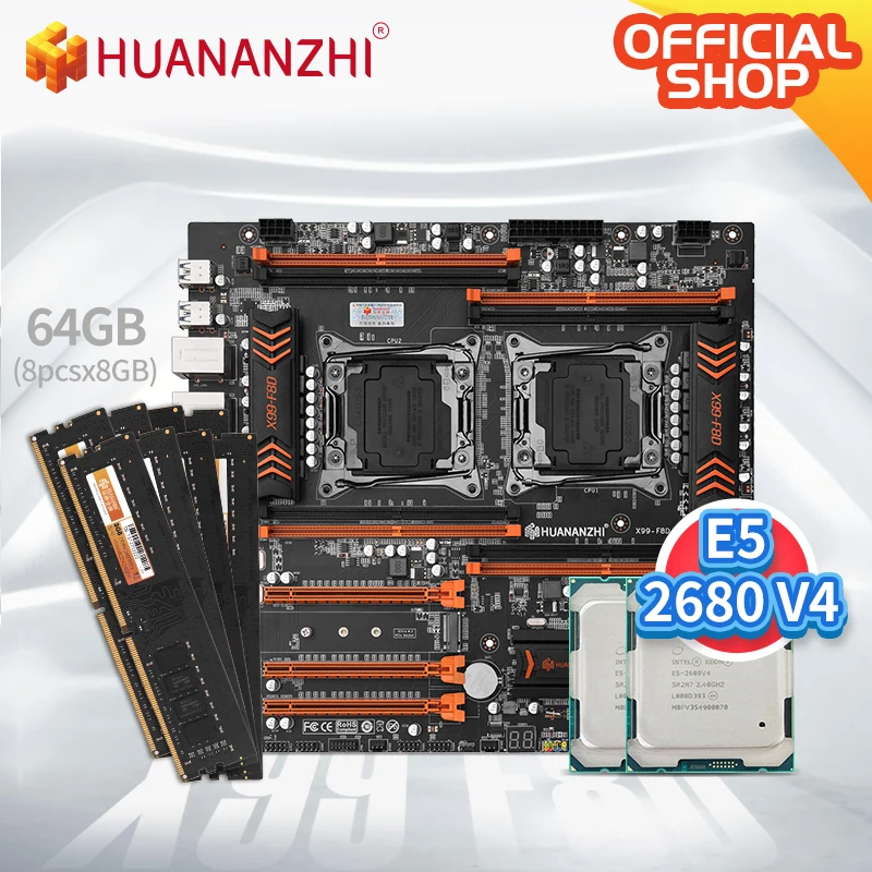 Buy HUANANZHI X99 F8D X99 Motherboard Intel Dual with Intel XEON E5 2680 V4*2 with 8*8GB DDR4 NON-ECC memory combo kit NVME USB and You will Save USD 0 or 0% %, Because You Just Pay for 1353.30 not Full Price for 1353.30