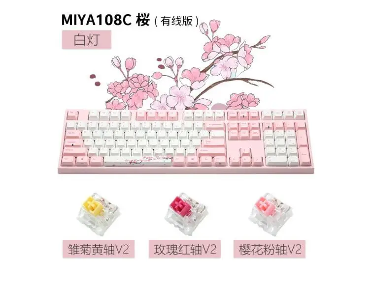 Addition Information of varmilo sakura MIYA108C 108key pink mechanical keyboard wired static capacitance axis V2 white backlit computer gaming keyboard
