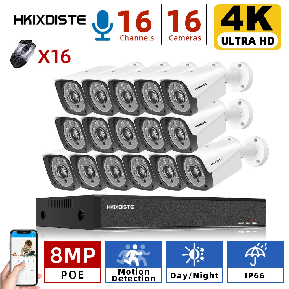 If You search information for , then 4K CCTV System NVR Kit 8MP Super Outdoor Motion Detection Security IP Camera Audio H.265+ 16CH POE NVR Video Surveillance set may be make you love